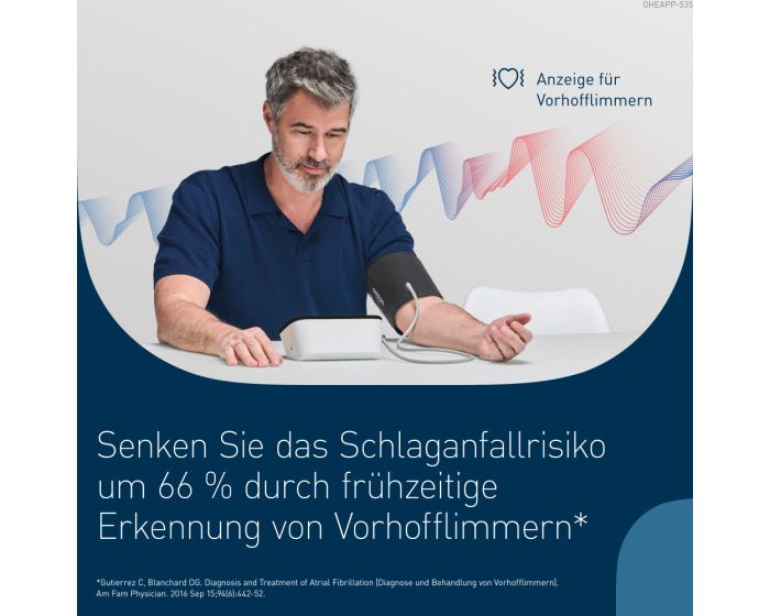 Mit nur einem Tastendruck können Sie bei jeder Blutdruckmessung automatisch auf Vorhofflimmern überprüfen. So holen Sie das Maximum aus Ihrer regelmäßigen Kontrolle heraus, beugen schwerwiegenderen Komplikationen vor und erhalten einen umfassenderen Überblick über Ihre Herzgesundheit – für weniger Unsicherheit und mehr Sicherheit.