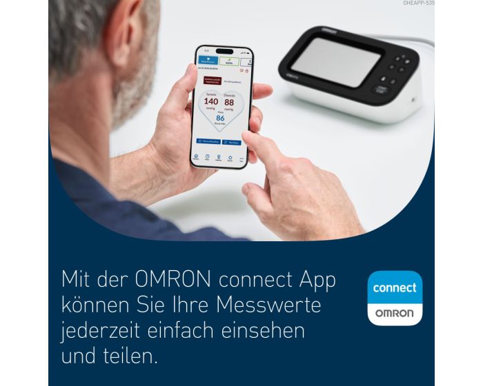 Die neuesten Messergebnisse werden per Bluetooth automatisch an Ihr Smartphone übertragen und sind jederzeit über die OMRON connect App abrufbar – oder Sie fragen einfach Alexa nach Ihren aktuellen Werten, ganz ohne zum Telefon greifen zu müssen.