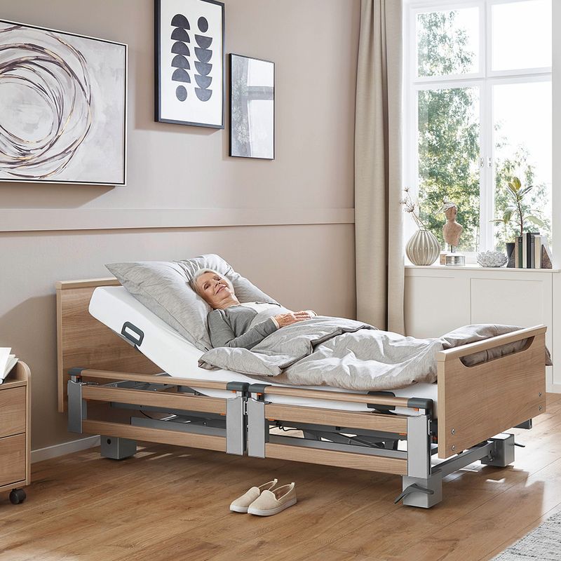 Das Komfortbett Regia ist ein qualitativ hochwertiges und individuell anpassbares Pflegebett mit elegantem Design. Es bietet höchsten Komfort und Sicherheit für den Patienten sowie eine einfache Handhabung für das Pflegepersonal.