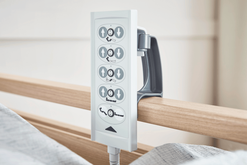 Das Bett verfügt über eine elektrische Höhenverstellung, die es ermöglicht, die Liegeposition des Patienten individuell anzupassen. Auch die Rückenlehne und die Beinauflage können elektrisch eingestellt werden.